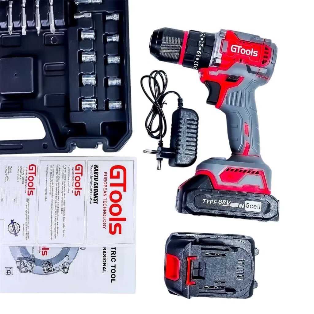 Gtools BOR impact drill BRUSHLESS GT34+13mm keyless auto lock 2baterai Ixt 88v mesin bor besi kayu driver sekrup drill