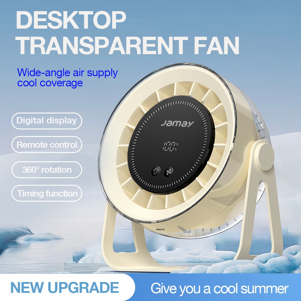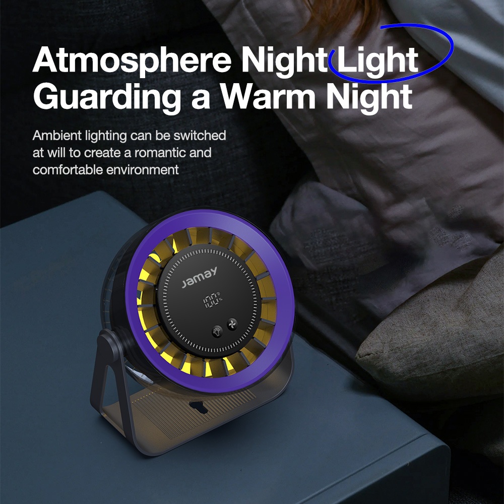 Jamay Portable Kipas Kipas Mini Deastop Fan 100 Gear Air Speeds 360° Adjustable 5 inch Wireless Remote Control LED Display Warm Night Light F20