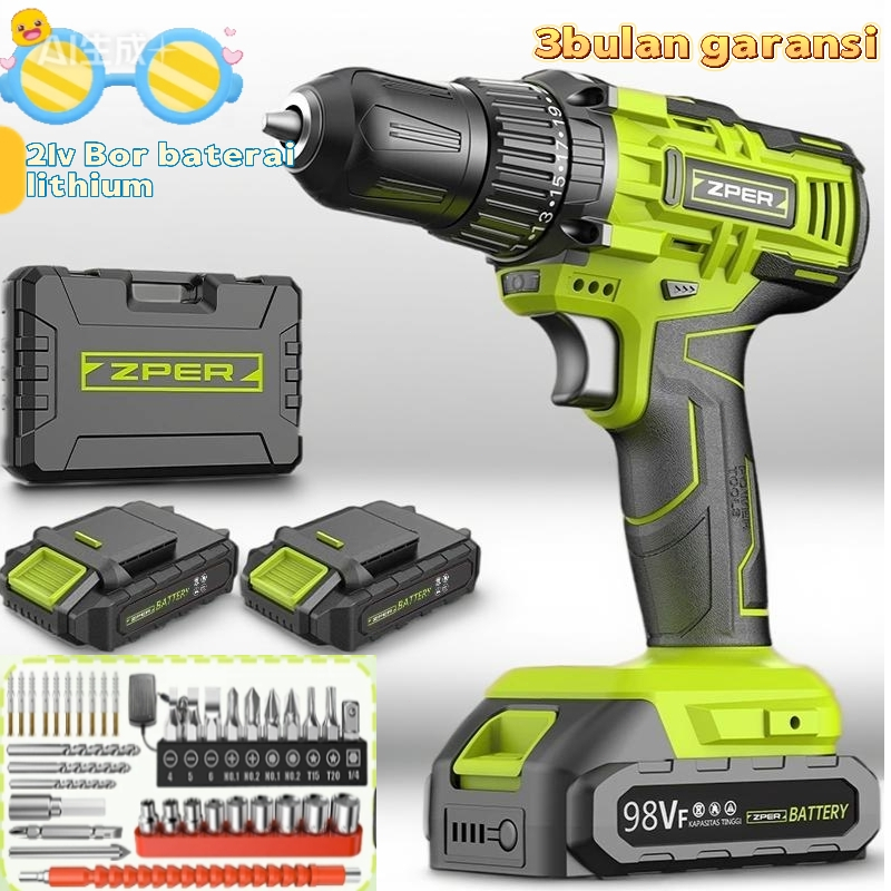 12.12 big sale ZPER Bor Listrik Cordless – Bor Baterai Tangan Tanpa Kabel, Motor Tembaga + Torsi Kuat + Variabel Speed +