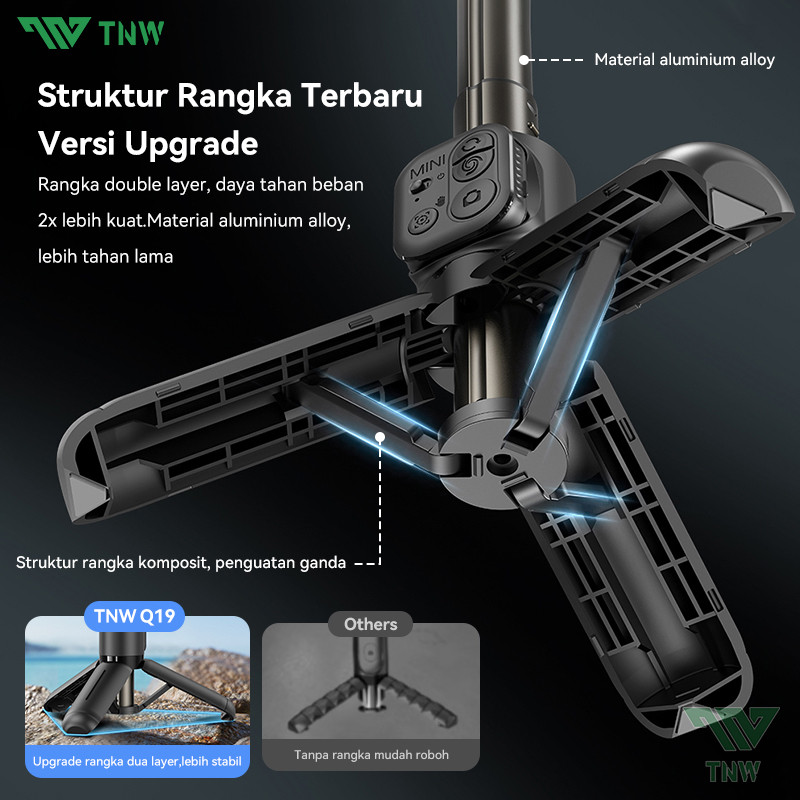 TNW Q19 AI Gimbal Stabilizer Auto Face Tracking Stabilizer Bluetooth Remote Control Tongsis Tripod