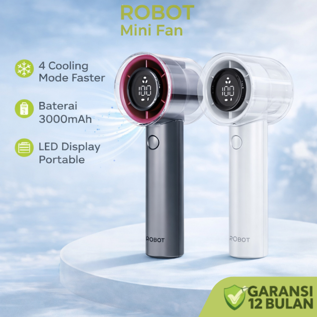 ROBOT Kipas Mini Portable RT-BF26 Kipas Angin Mini Grey Portable 3000mAh Handheld 15000RPM LED Indicator Kipas Tangan
