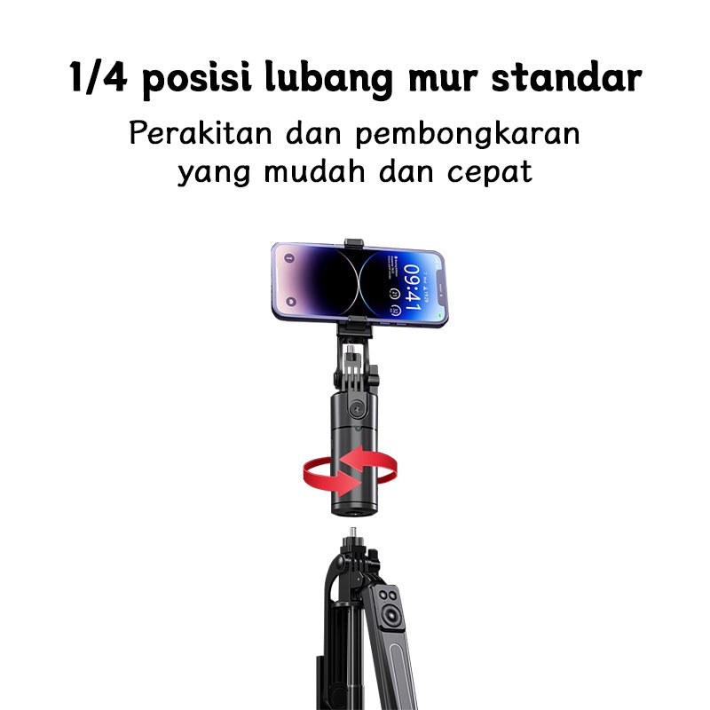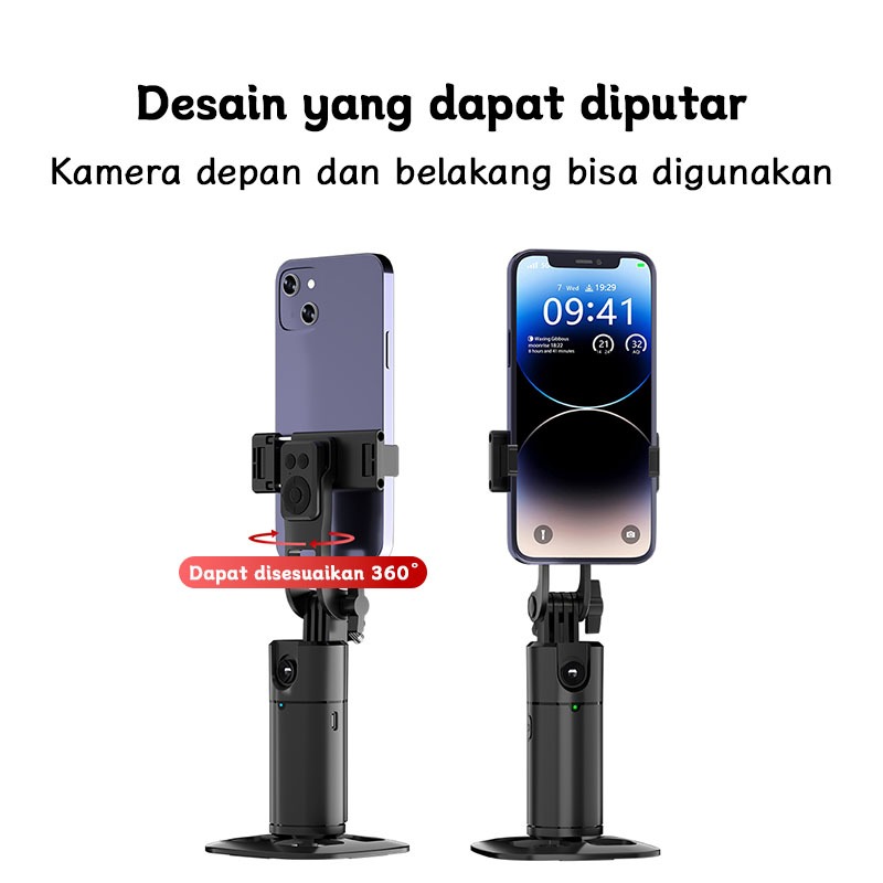 TOOREA Auto Face Tracking Gimbal Stabilizer Handphone Stabilizer 360° Pelacakan Wajah Otomatis +180cm Tongsis Tripod Paket Kombinasi Dengan Lampu LED