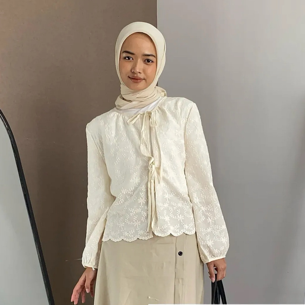 [Aurel]Blouse Atasan Wanita Lengan Panjang Motif Bunga Hijab Friendly