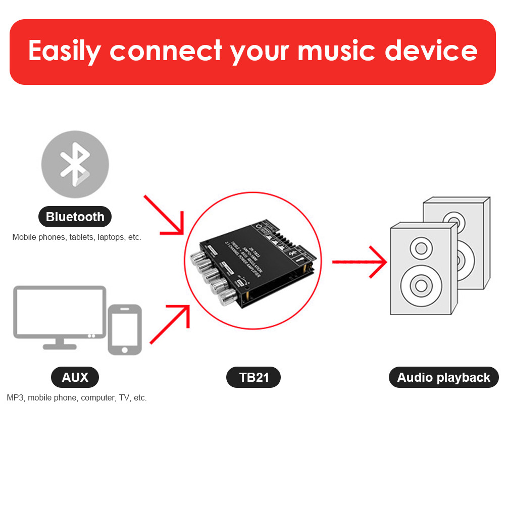 ZK-TB21 Amplifier Bluetooth 2.1 Channel 200W - Bass Kuat, Support Subwoofer Besar, Chip TPA3116D2 Digital