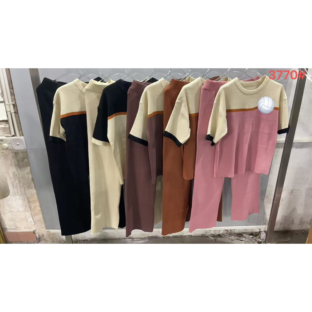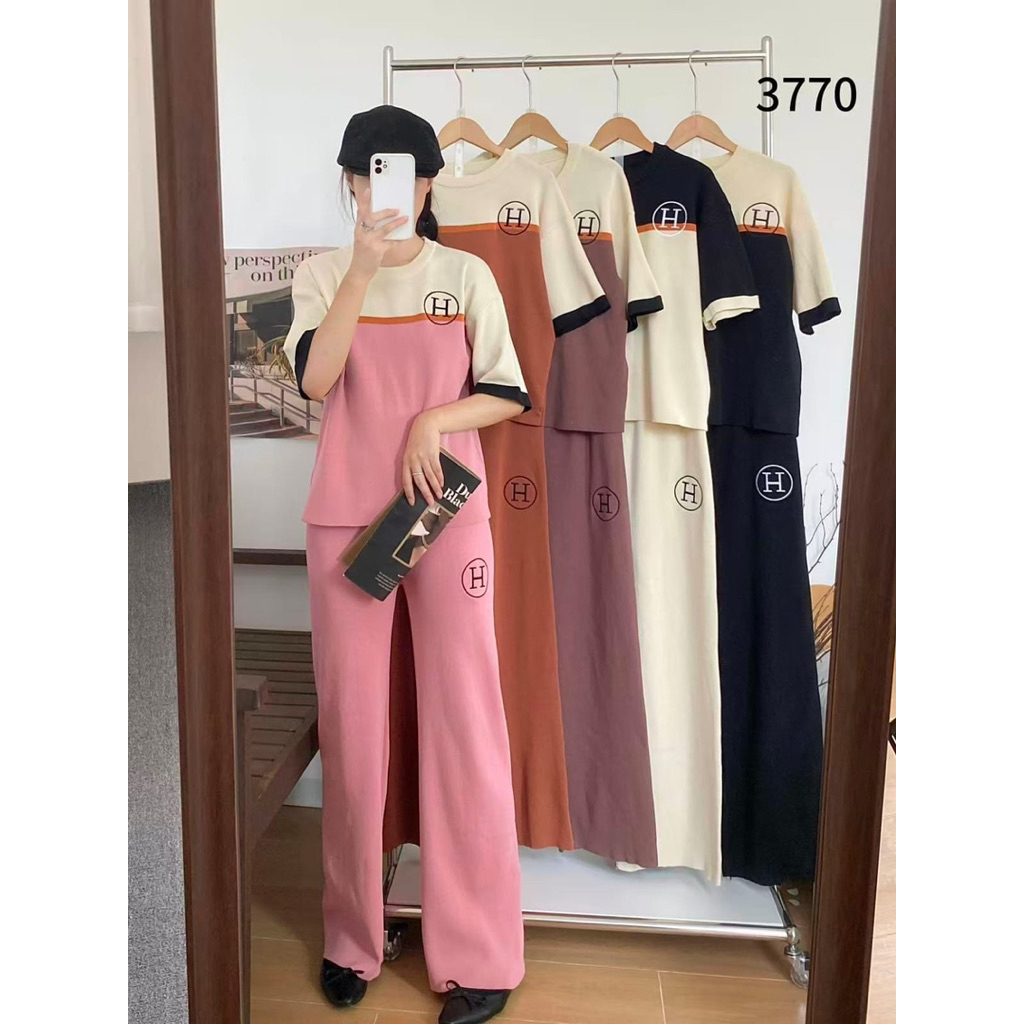 3770 SETELAN KNIT H PREMIUM IMPORT LENGAN PENDEK WANITA POLOS KOMBINASI