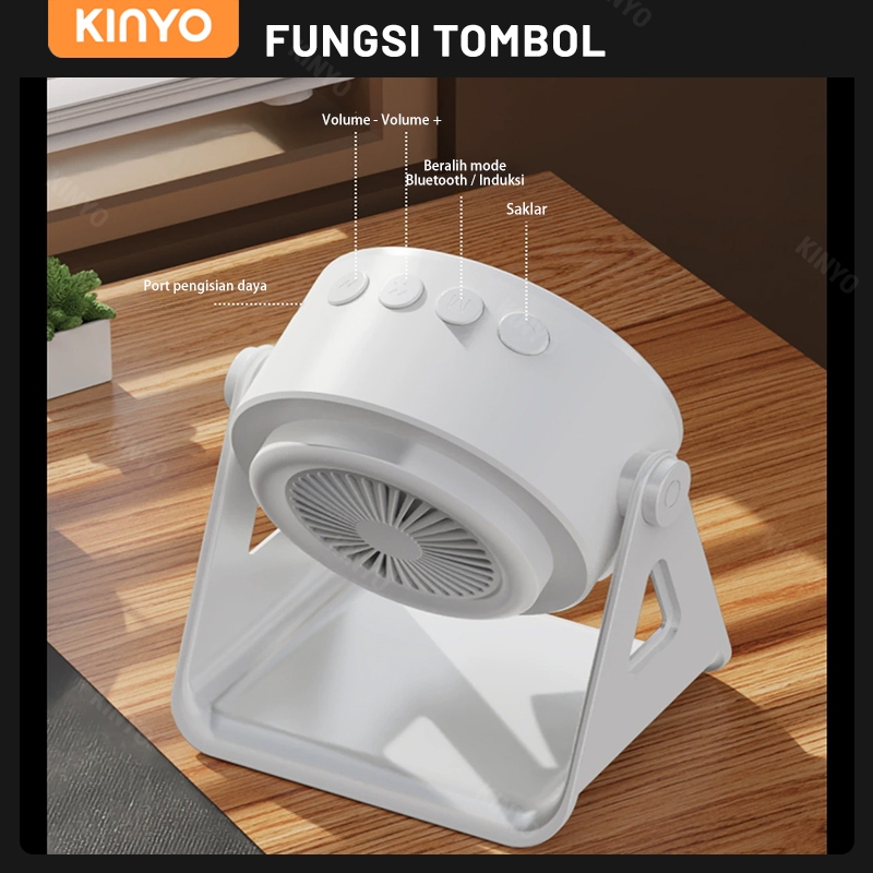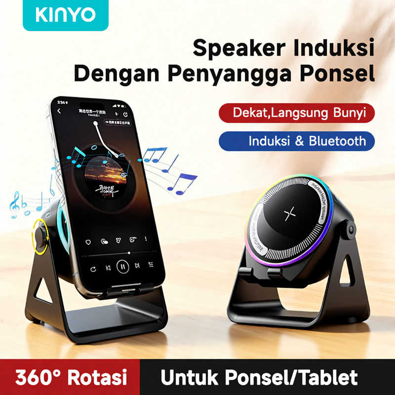 KINYO Speaker Bluetooth Pintar dengan Sensor, Dudukan Ponsel 3-in-1, Pengisi Daya Nirkabel Portabel untuk Meja, Suara Jernih dengan Bass Kuat