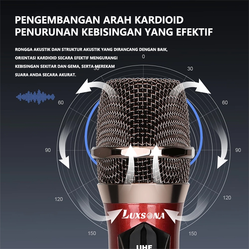 LUXSONA Mikrofon Nirkabel/Mikrofon Karaoke Ganda/Mic Karaoke Wireless Asli Profesional Murah/Mikropon Karaoke Genggam isi ulang Dengan Sistem Penerima
