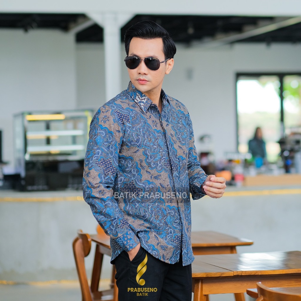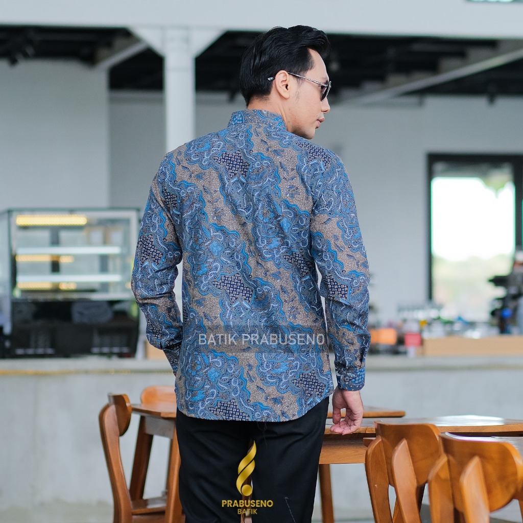 Batik Prabuseno Motif Langitan Kemeja Batik Slimfit Lengan Panjang Bahan Katun Baju Kerja Kantor