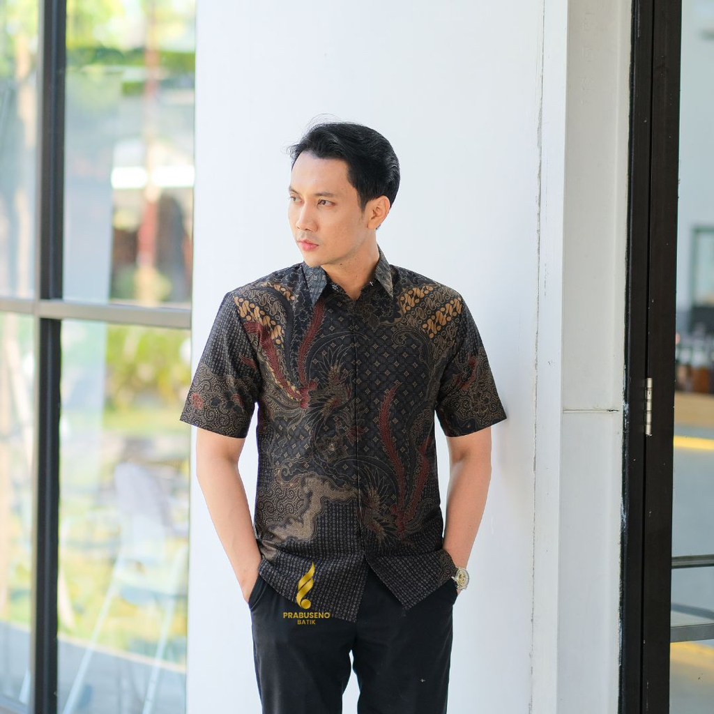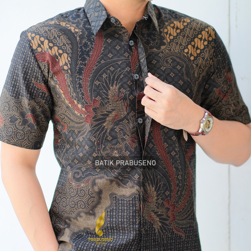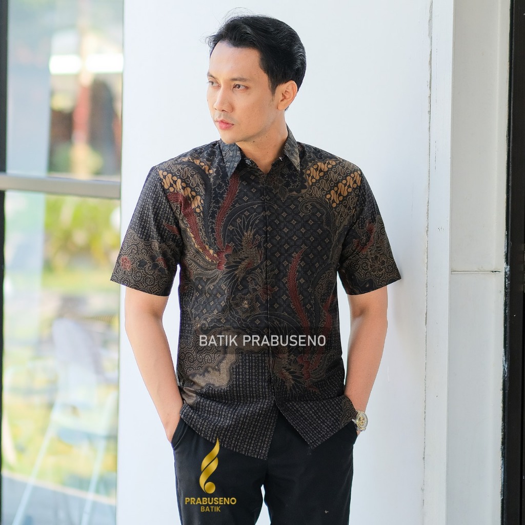JAYANTAKA Kemeja Batik Pria Lengan Pendek Slim Fit Slimfit Original Ori Prabuseno Jumbo Big Size Couple Modern Premium B