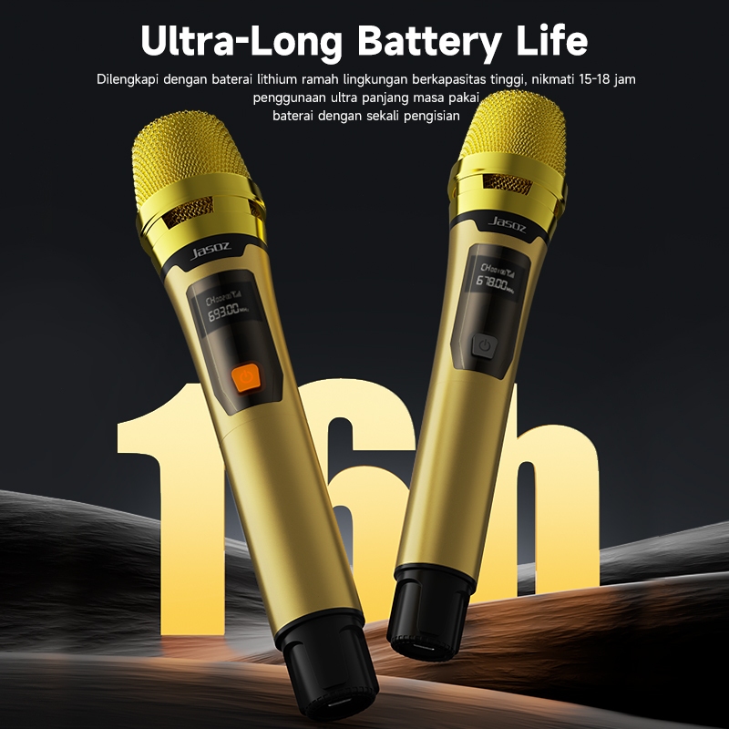 Jasoz Wireless Microphone UHF Profesional Cordless Bisa di Charger Karaoke Mikrofon