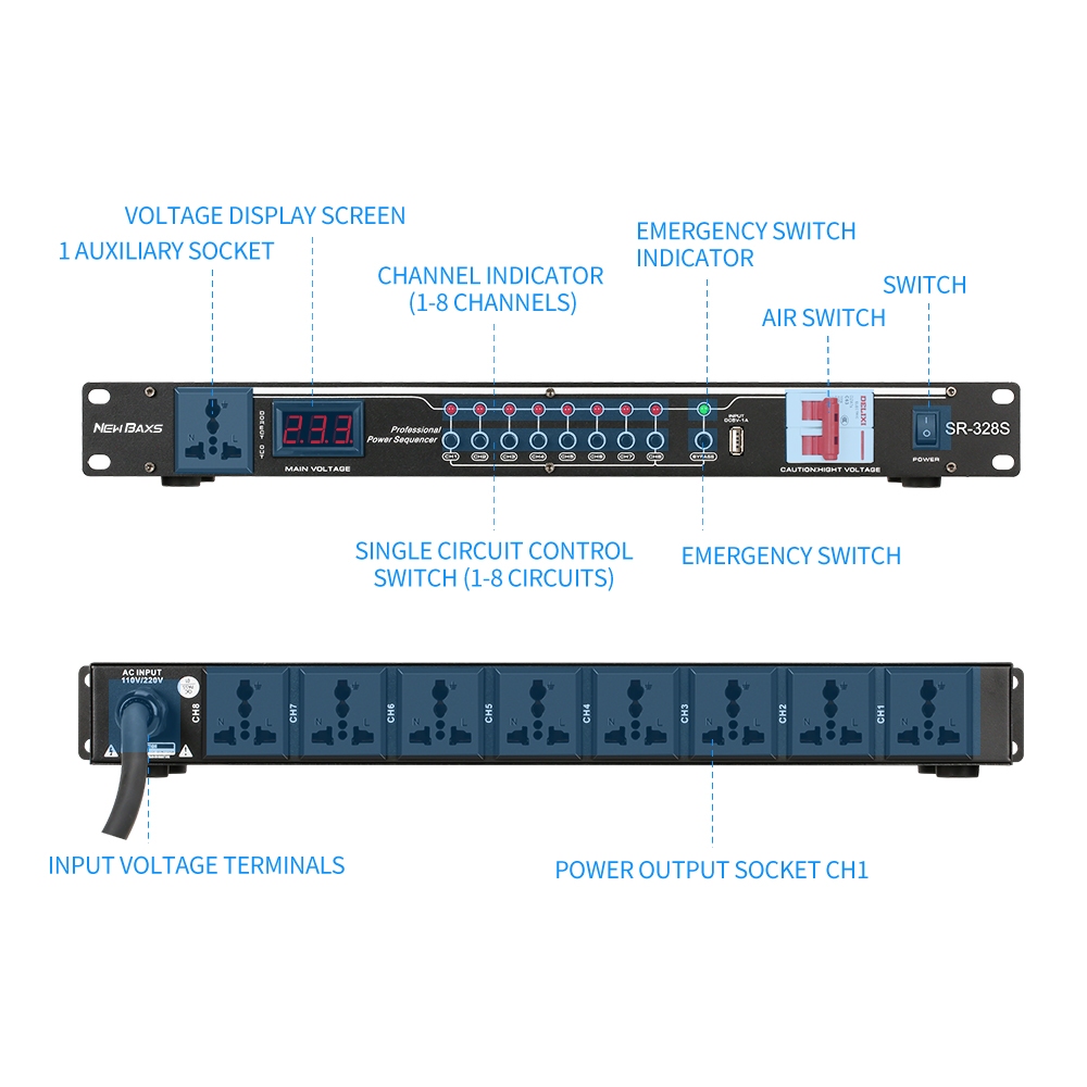 NEW BAXS Manajer listrik SR-328S 40 Amp power controller 8-channel audio time system power is applicable to stage central control socket controller.