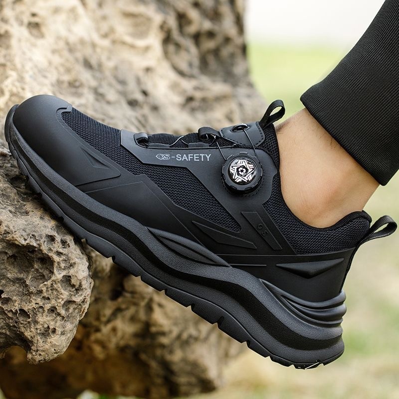 Sepatu Safety Sport Casual Hitam Pria/Sepatu Safety QS 2025 Ujung Besi Tali Putar Simple Shoelace/Anti Smash/Anti Slip O