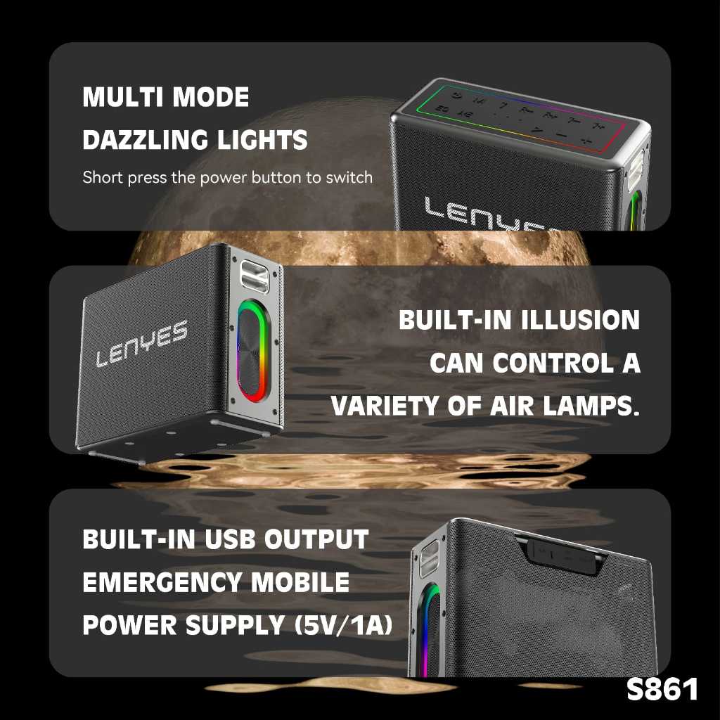 LENYES S861 150W KTV RGB LED Light Wireless Speaker + Microphone Karaoke Bluetooth 5.0 Portable High Power