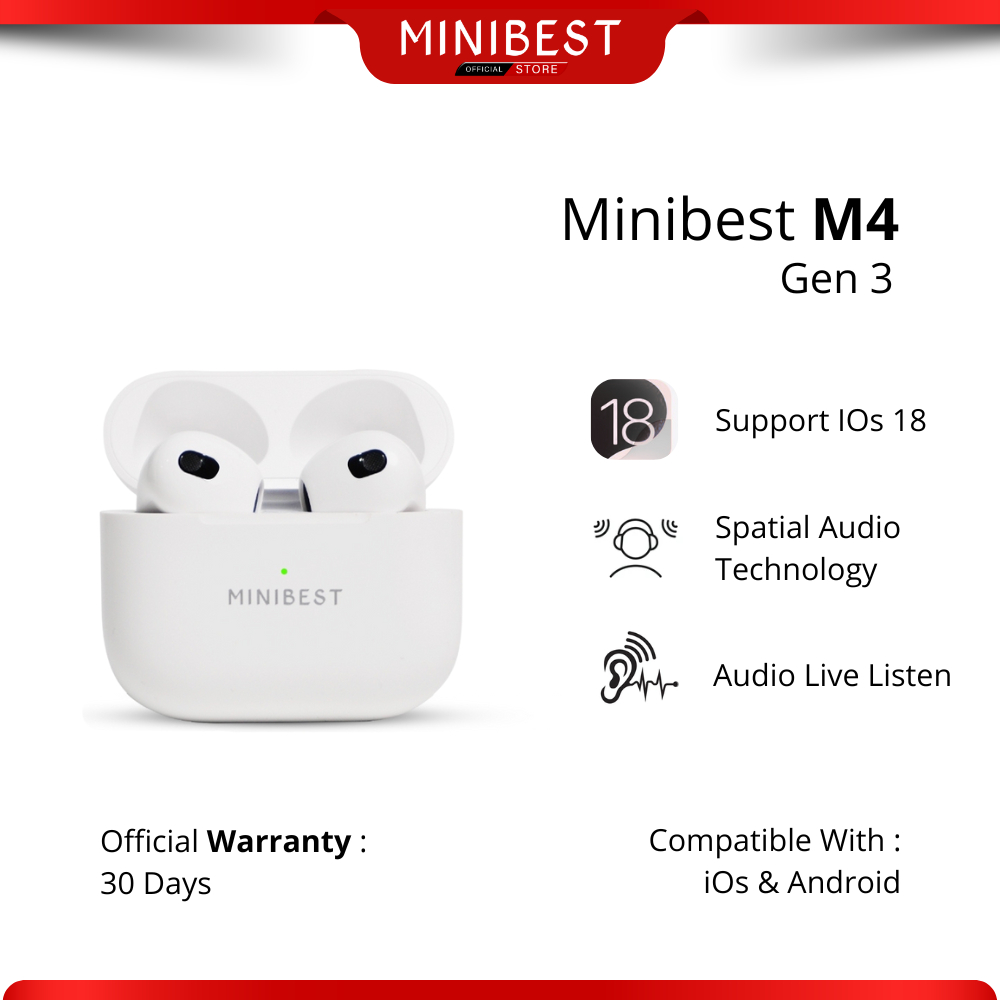 MINIBEST M4 Gen 3 TWS Earphone Headset Bluetooth V5.2 In ear Detection Wireless Charging