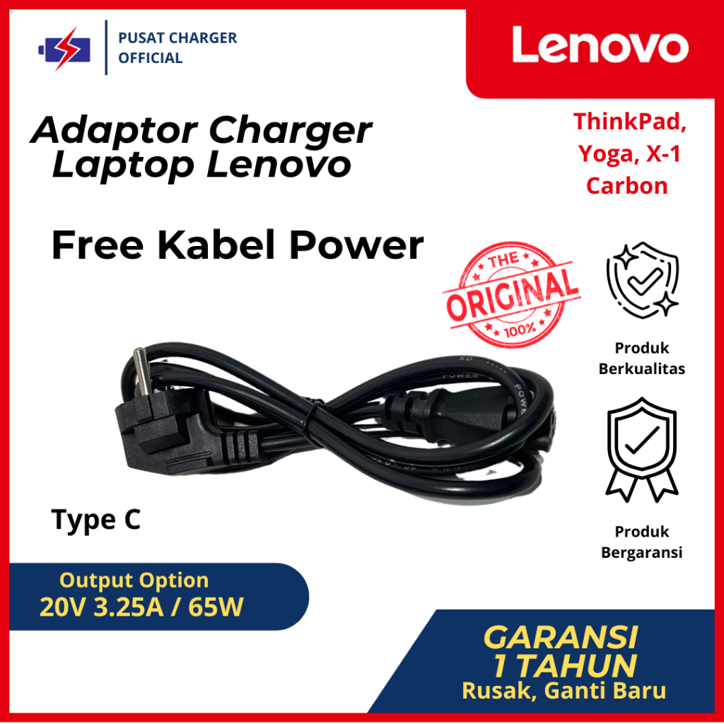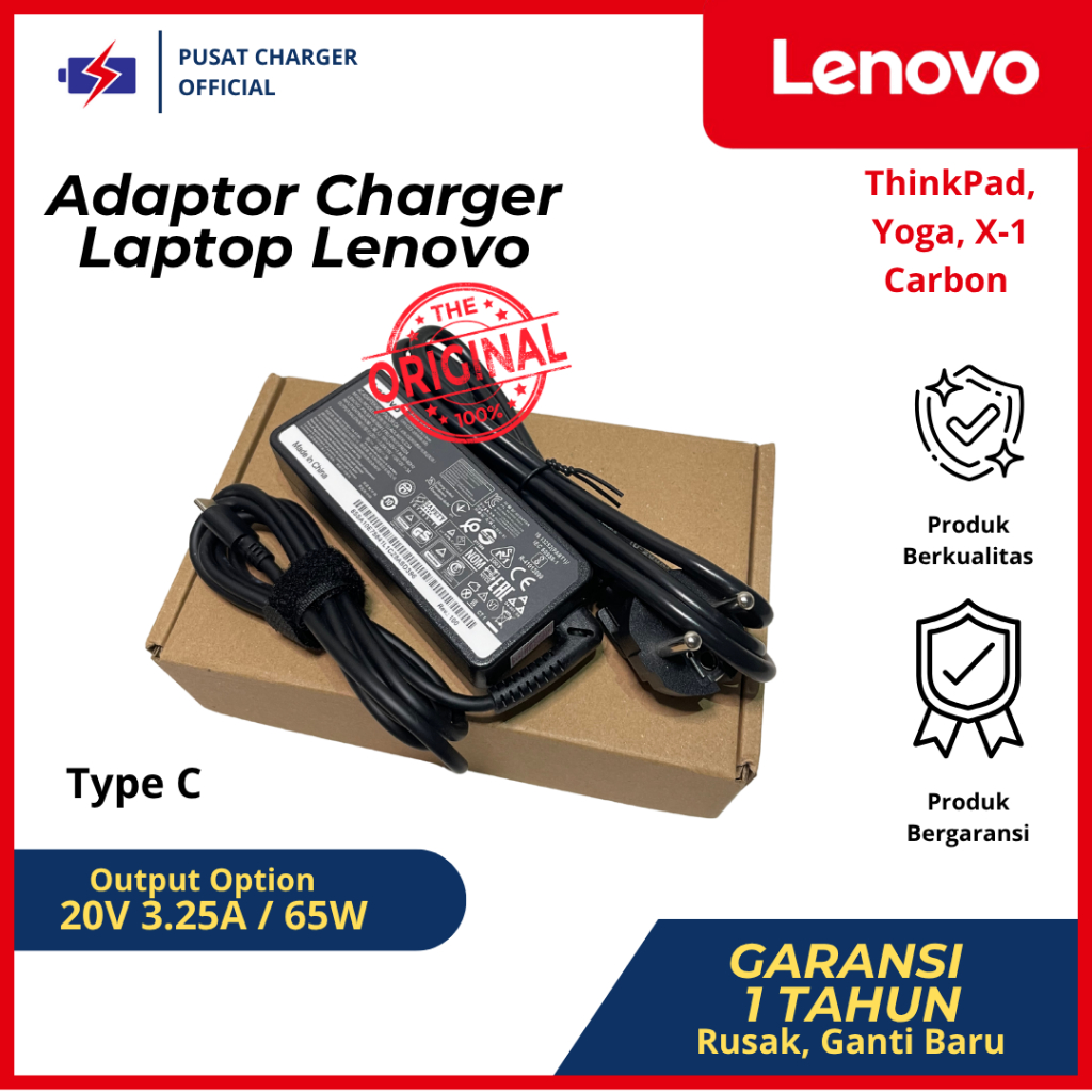 [GARANSI 1 TAHUN] Charger Adaptor Lnvo Type C Original Thinkpad Yoga X1 Carbon 65W Adapter