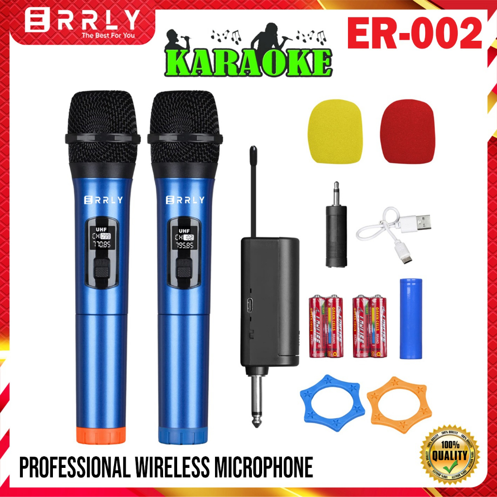 Mic Karaoke Microphone Wireless Tanpa Kabel MIC2 MIC1 ERRLY ER001 Single ER002 Dual Digital LED Mic Karaoke GENGGAM