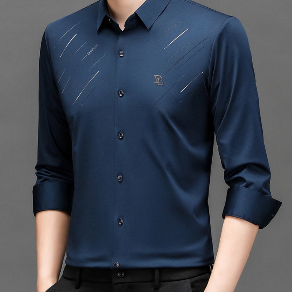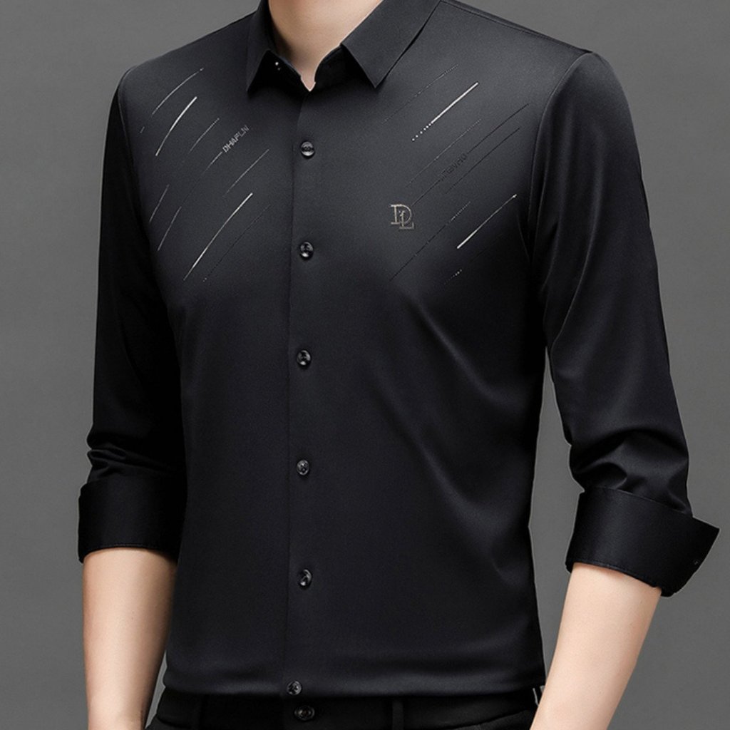 () Kemeja pria lengan panjang dengan jahitan sutra. Kaos polo berkualitas tinggi tidak perlu disetrika