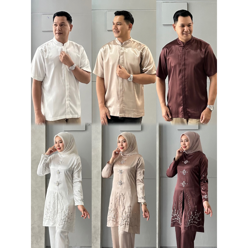 Ayumofashion | RAIA SET COUPLE SERIES Bahan Yamaha Silk Premium Set Atasan Celana Wanita dan Kemeja Pria | MIX PAYET BAJ
