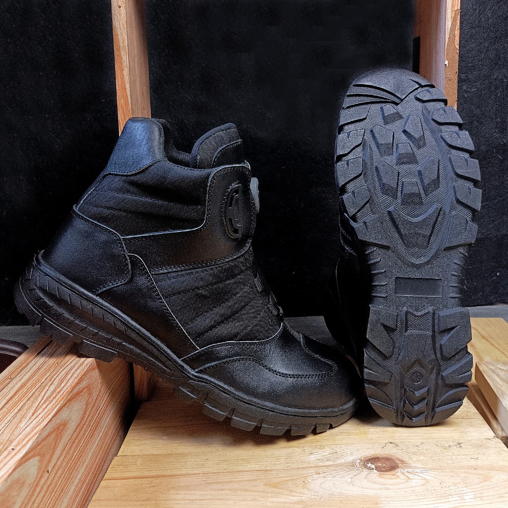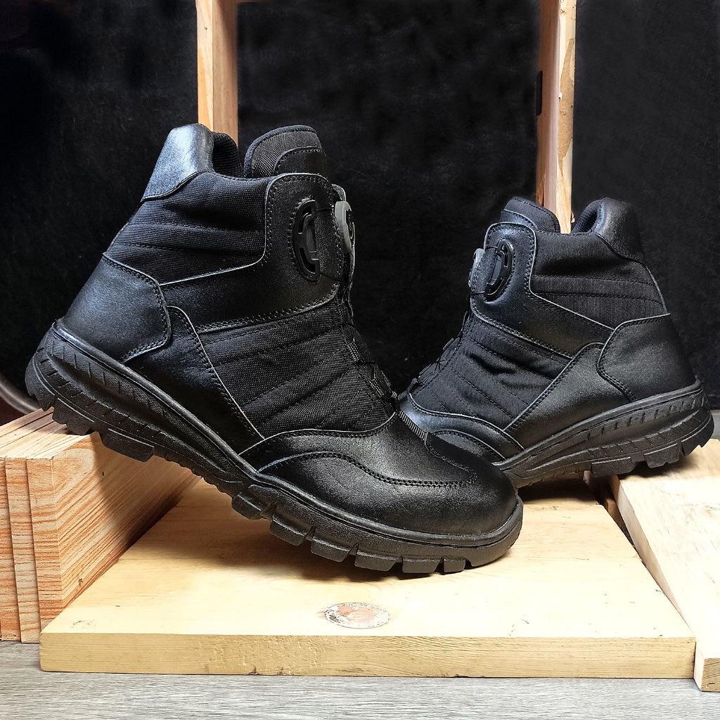 Mr.LA Sepatu PDL PDH Pria Tali Putar Kulit Asli Warna Hitam Safety Size 39-45