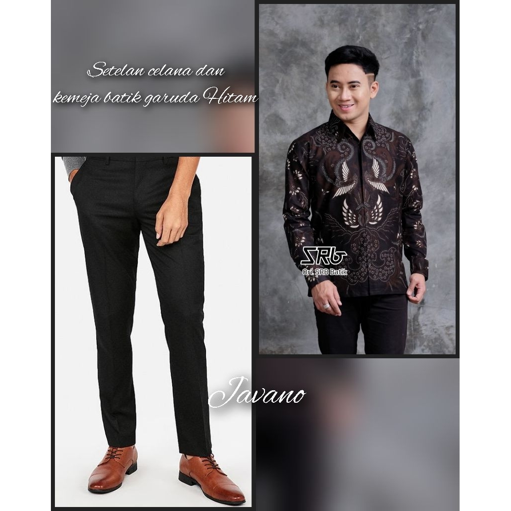 JAVANO | setelan kemeja batik dan celana slimfit ethnik hitam kemeja lengan panjang