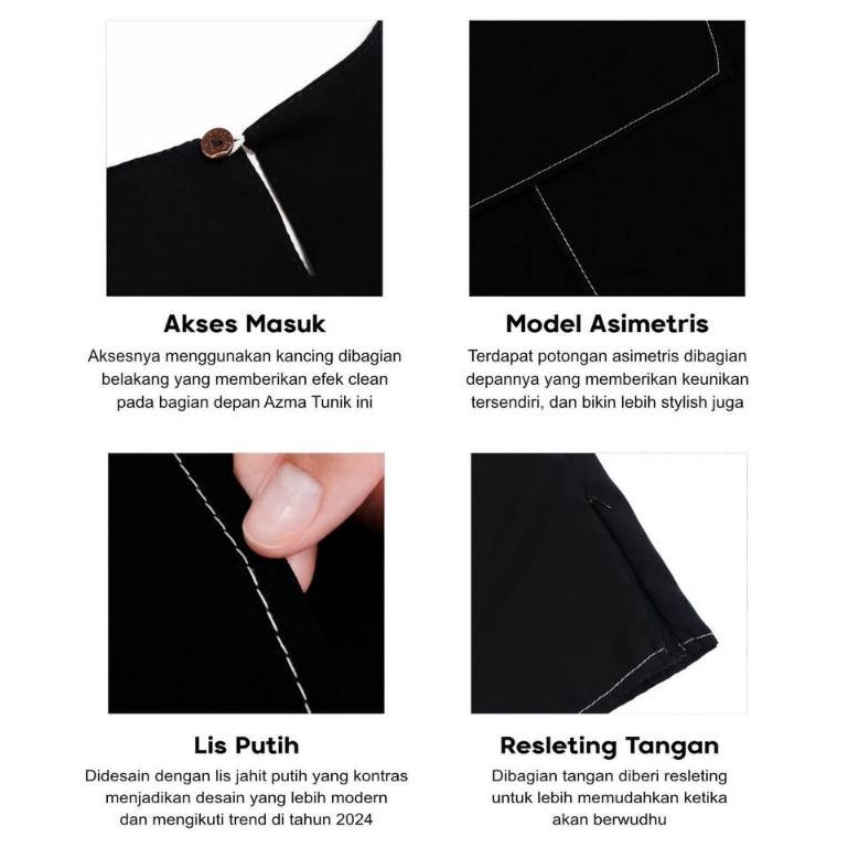 Mininos Azma Tunik | Baju Atasan Basic Daily Long Tunic Asimetris Remaja Muslimah