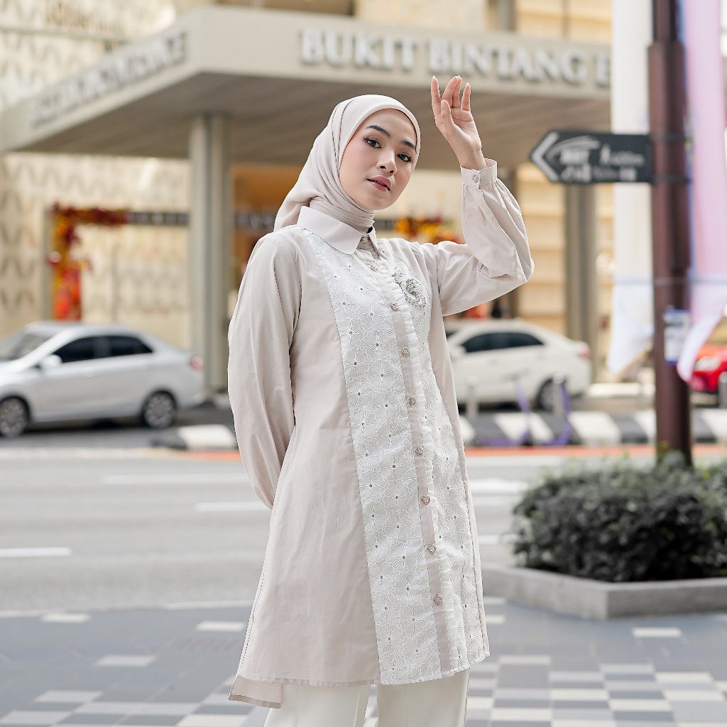 Nibras Hijab X Kalasiris Atasan Tunik Blouse Wanita Lengan Panjang Katun Bordir - Noura Tunic