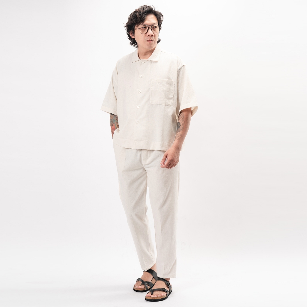 Jane Frey Clothing Boxy Set Linen Pria | Set Linen Lengan Pendek | Celana Panjang | Kemeja Boxy | 8239