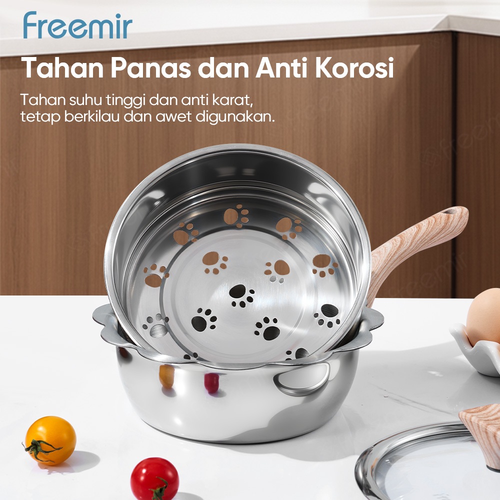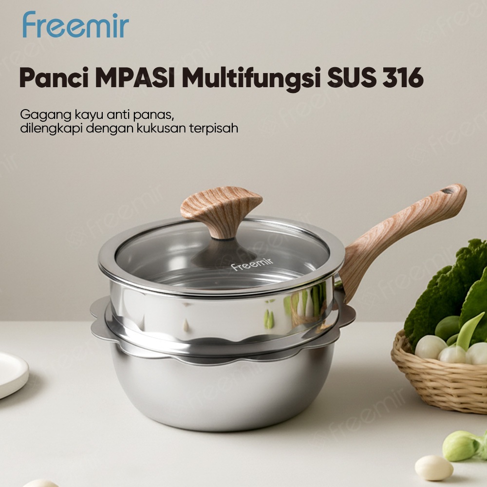 Special freemir Panci Stainless Steel 316 Serbaguna 3in1 Kukusan + Panci Susu MPASI Bayi | Steamer Mini untuk Kompor Semua Jenis