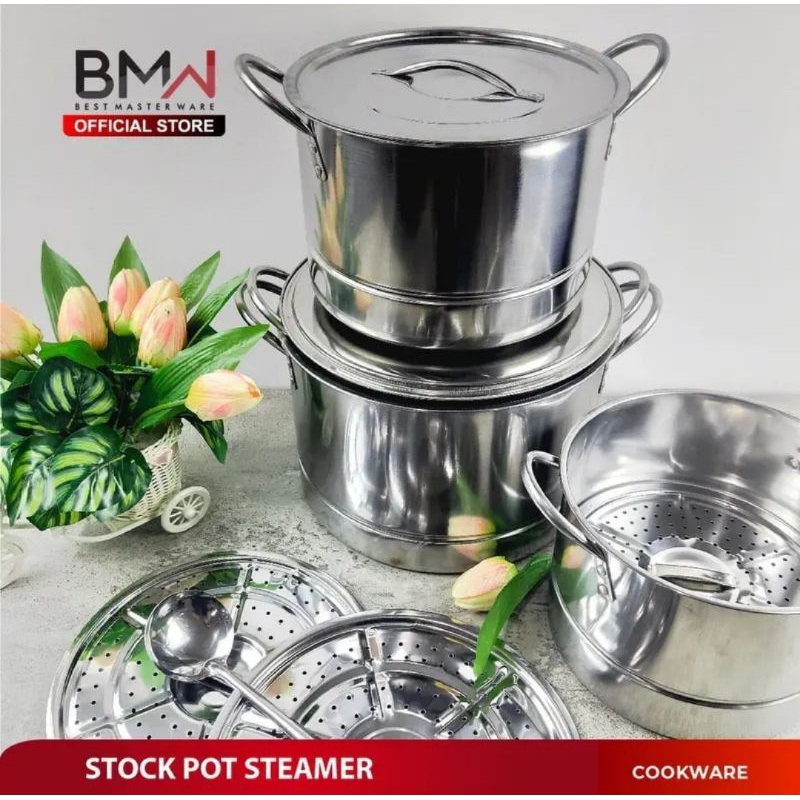 1 set 4pcs stock pot steamer stainless TEBAL / panci stockpot stainless / panci dandang steamer / 4 set stockpot steamer + teko / panci dandang / panci kukus stainless isi 4
