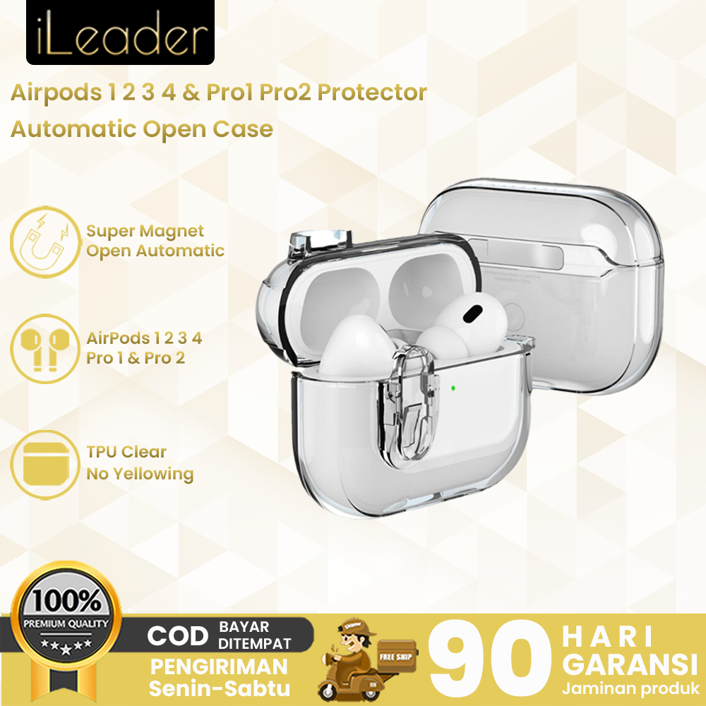 Ileader Air 4 Magnetic Lock Automatic Open Case Clear Tpu Soft Case For Air 1 2 3 Pro1 Pro2 Apple Air Transparent Cover