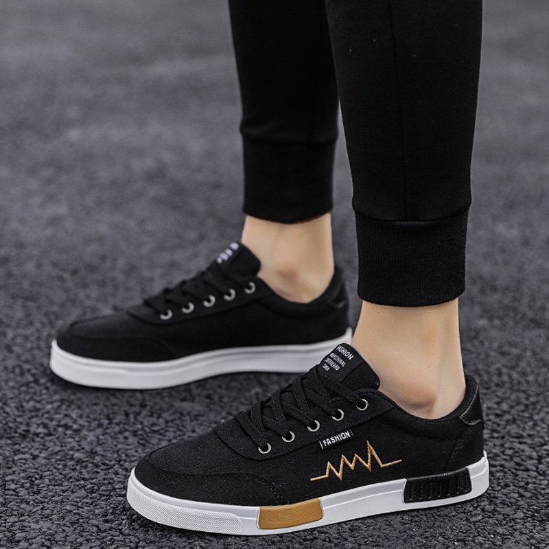Zedruz Sepatu Sneakers Tali Pria Casual Krem Sekolah Kerja Sport Shoes Kekinian Muda Black 6636