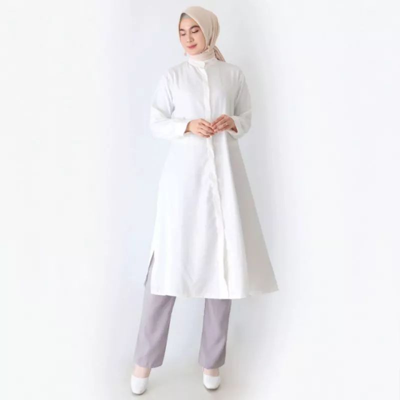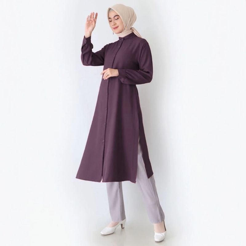 Kemeja Kerja Tunik Wanita Kancing Full Hidup Polos Bahan Toyobo (Mecca Tunik)