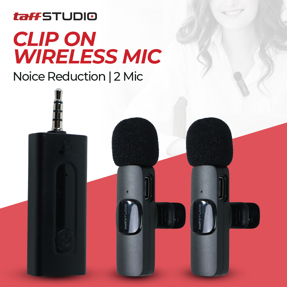 TaffSTUDIO Clip On Mic Wireless Noice Reduction Vlogging Singing 3.5mm 1-2 Microphone - K35 Pro