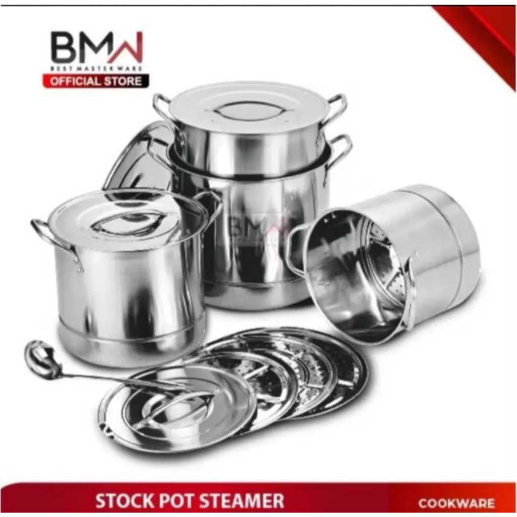 1 set 4pcs stock pot steamer stainless TEBAL / panci stockpot stainless / panci dandang steamer / 4 set stockpot steamer + teko / panci
