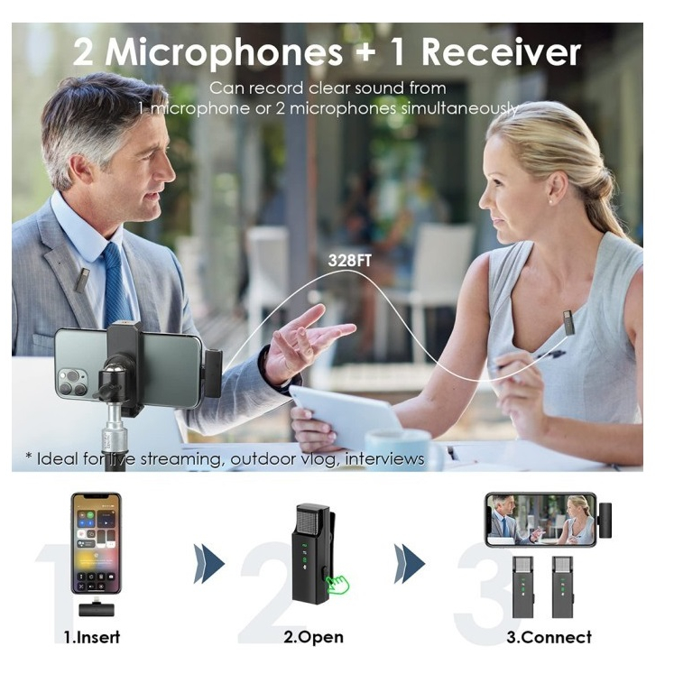 SMARTCOM - Mic Wireless Dual Lavalier Microphone Plug & Play Mic Clip On Mic Konten