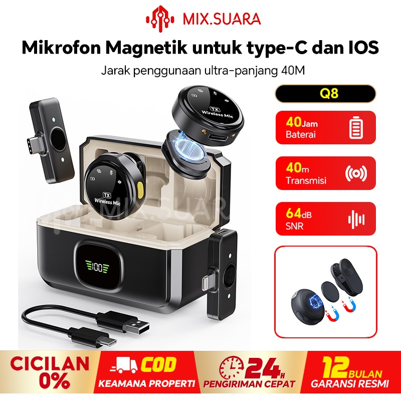 MIX.SUARA Q8 Wireless Microphone Magnetic Clip on Microphone Dual Mikrofon Wireless Mikrofon HP Lavalier Microphone Wireless Plug Play Lapel Mic