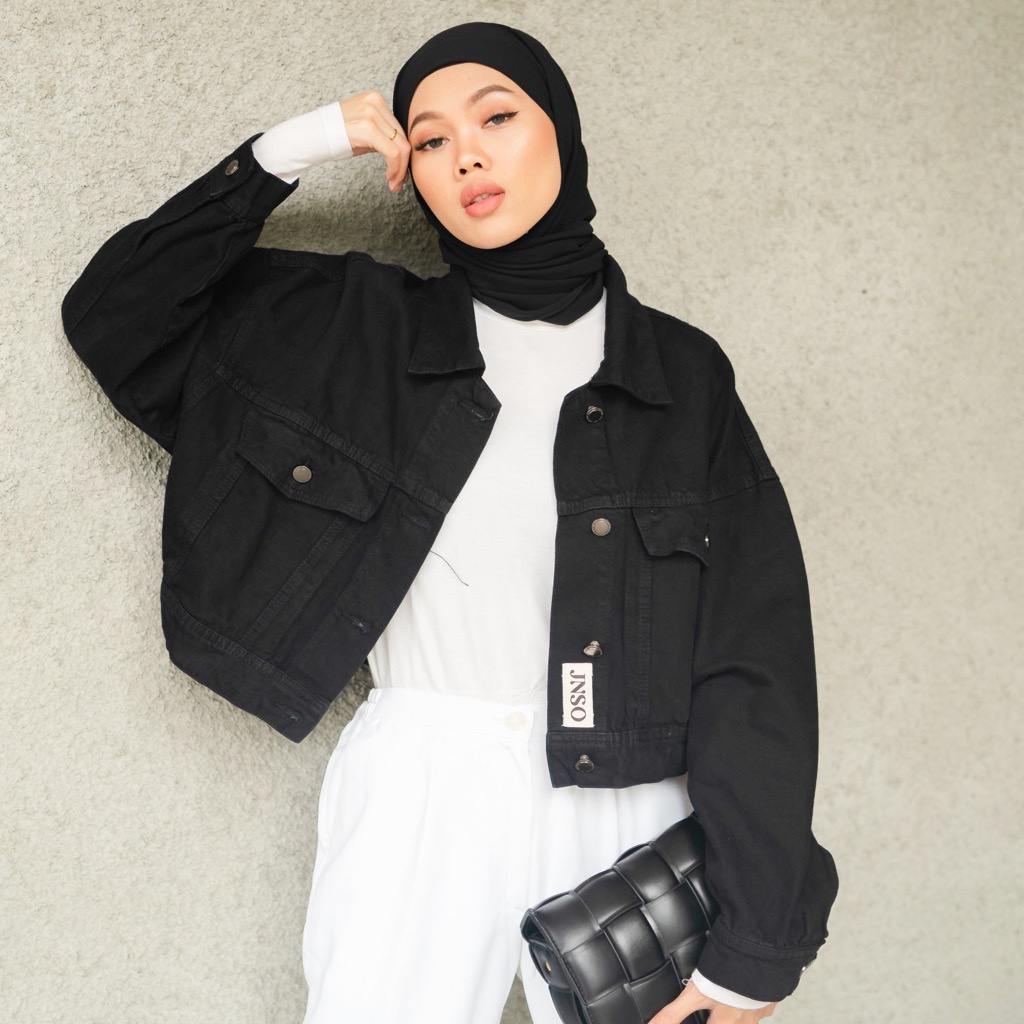 JINISO Jaket Crop Jeans Oversize Urban Black