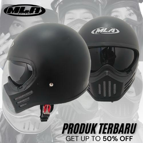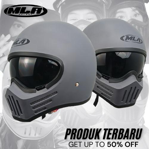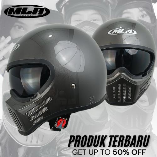 Helm Retro MLA CAKIL HITAM GLOSY VISOR SMOKE | Helm Full Face Premium Pria Dan Wanita Dewasa SNI