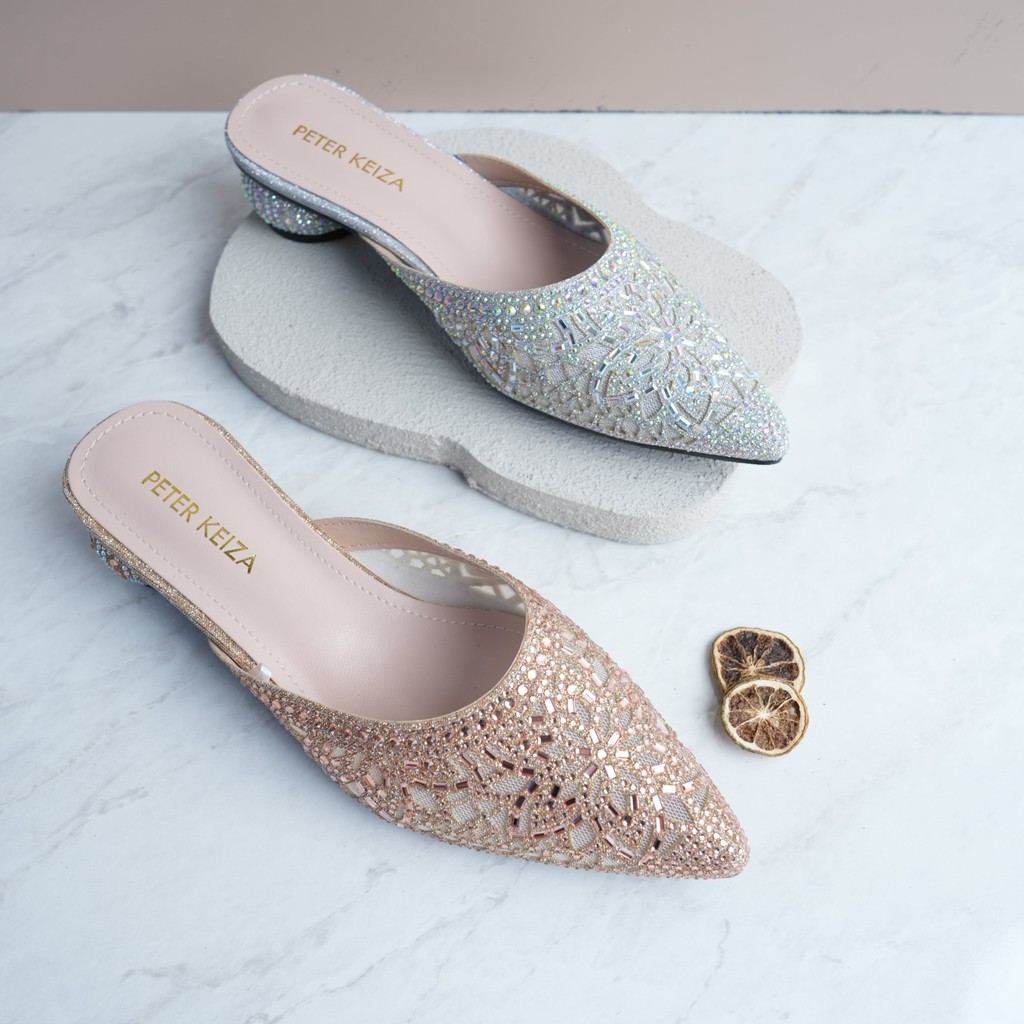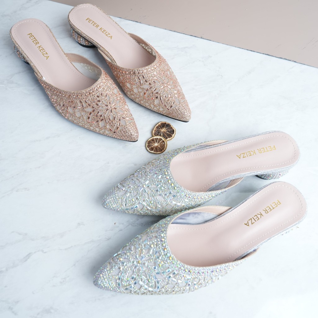 Peter Keiza Bustong Sendal Pesta Permata dengan hak Bulat 3cm XB03-03