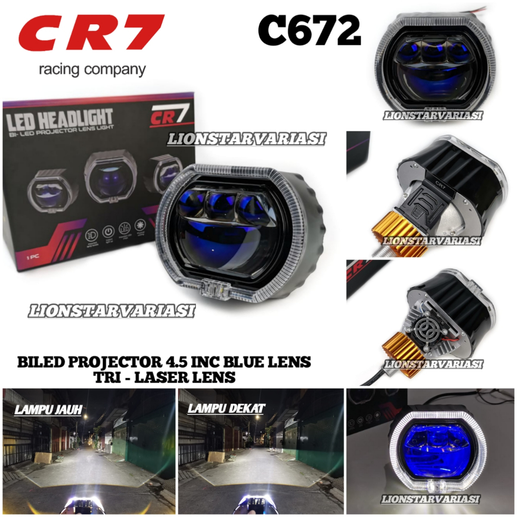 CR7 C672 - Biled Projector 4.5 Inch Blue Lens Plus 3 Mata Laser Devil Shroud High low Flat Cut Biled