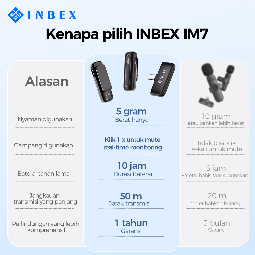 INBEX IM7 1in2 Wireless Lavalier Microphon 360° Omnidirectional DSP Chip One-Touch Mute 2.4G Low-Latency 9 ms & ENC 90 PERSEN