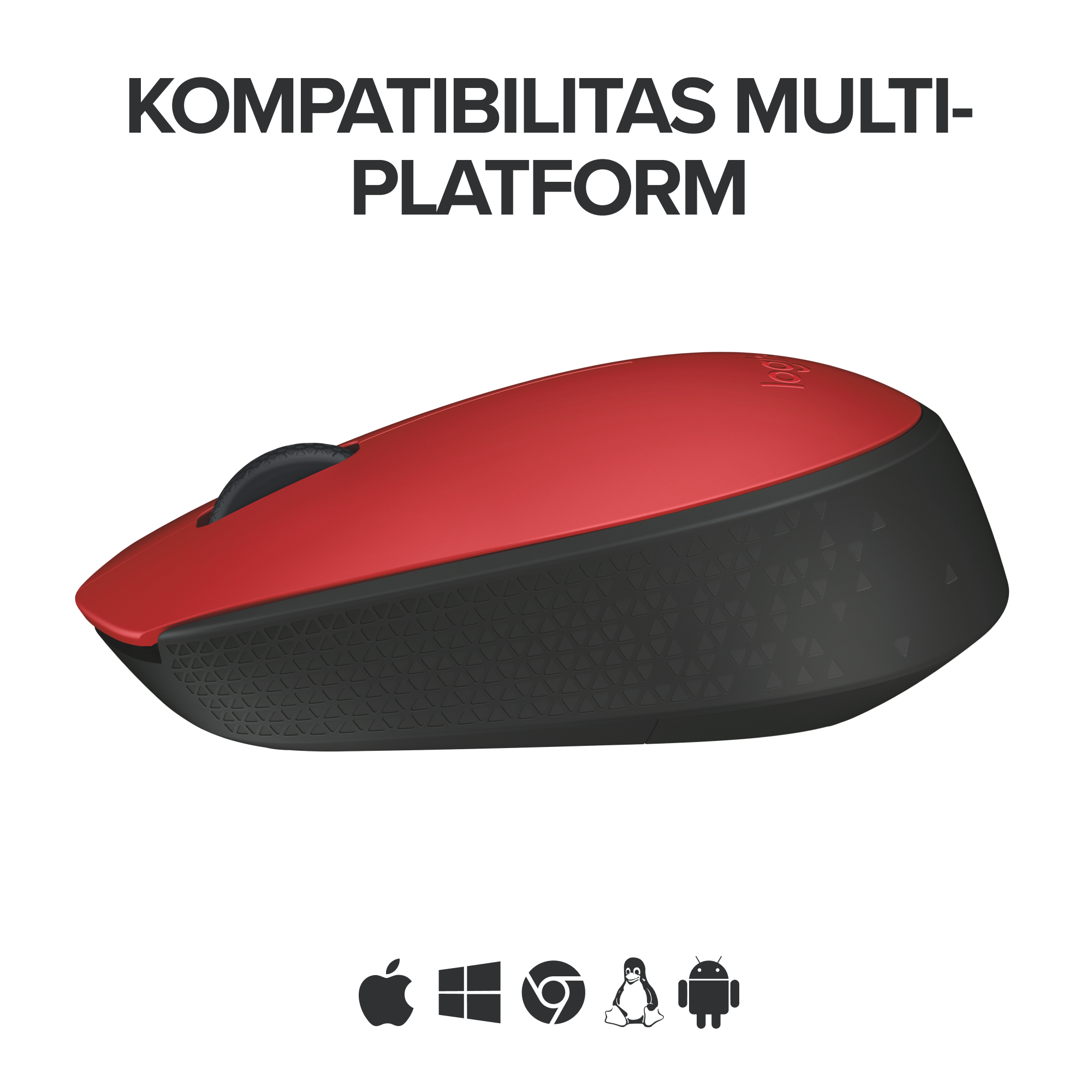 Logitech M171 Mouse Wireless untuk Windows, Mac, ChromeOS - Red