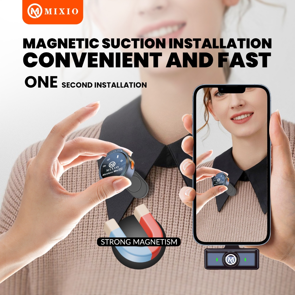 MIXIO T11 Magnetic Mic Wireless Clip on Microphone Mikrofon Lavalier HP Plug & Play
