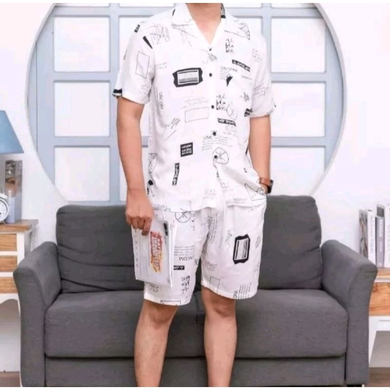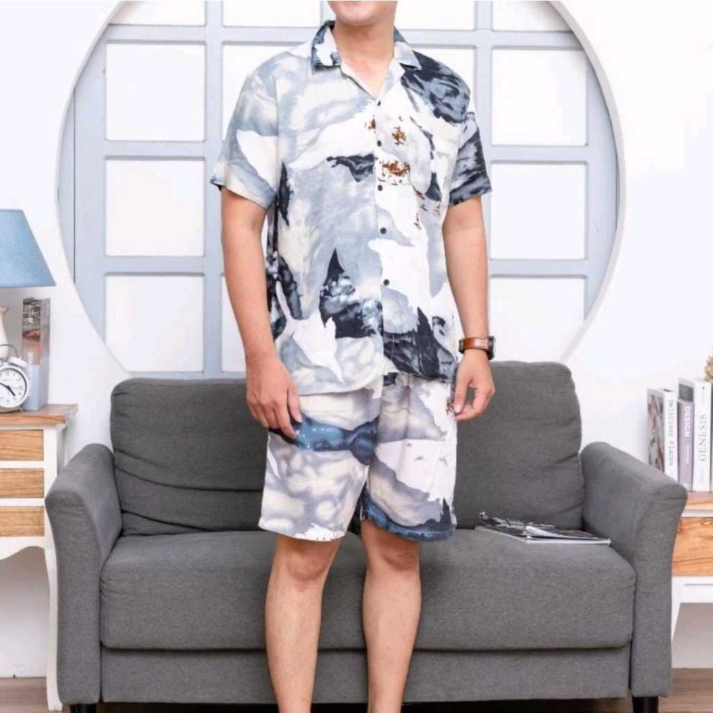Set Kemeja Hawaiian Printing | Kemeja Oneset | Pajamas Pria | Oneset Rayon | Hawaian Set | Oneset Amarilo