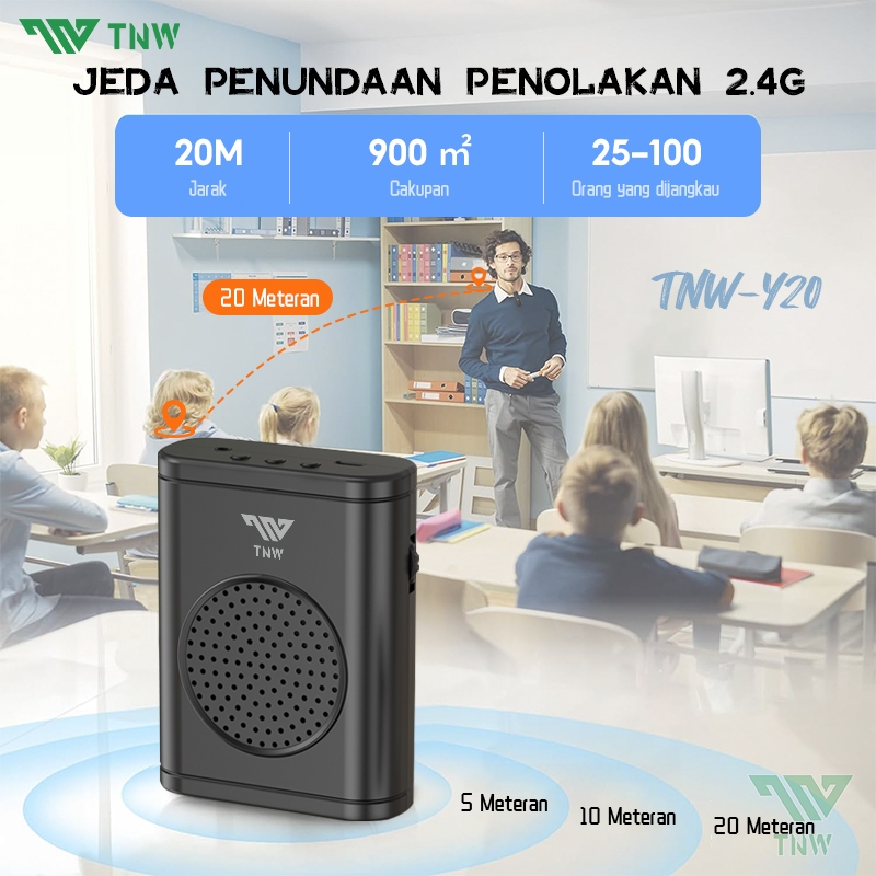 TNW Y20 Speaker Pinggang Mini Speaker Megaphone Portable Dengan Microphone Clip On Wireless Mic Untuk Guru Tour Guide Dosen