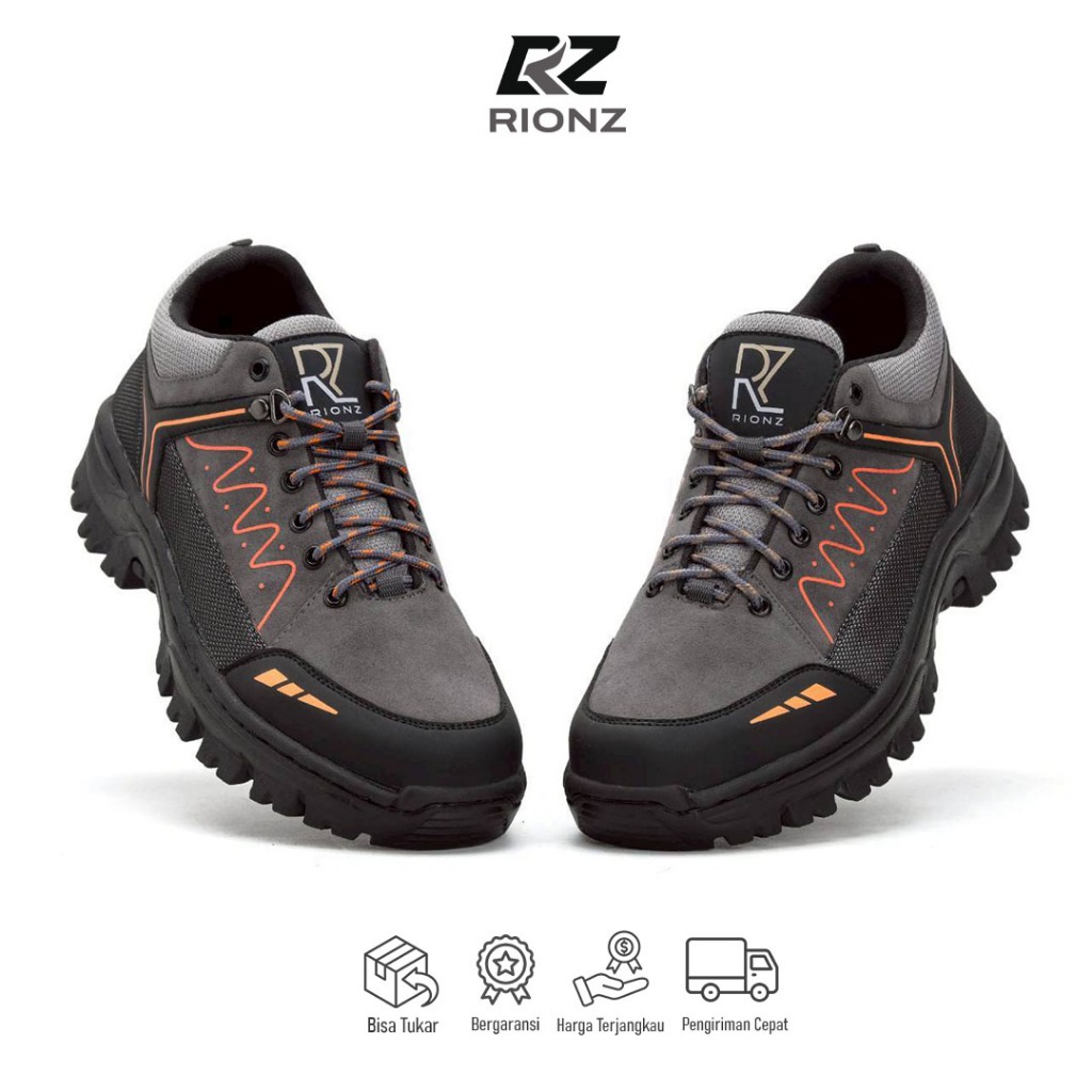 Rionz Rodri Low Sepatu Hiking Pria Boots Gunung Grey Cream Black Tracking Outdoor Touring