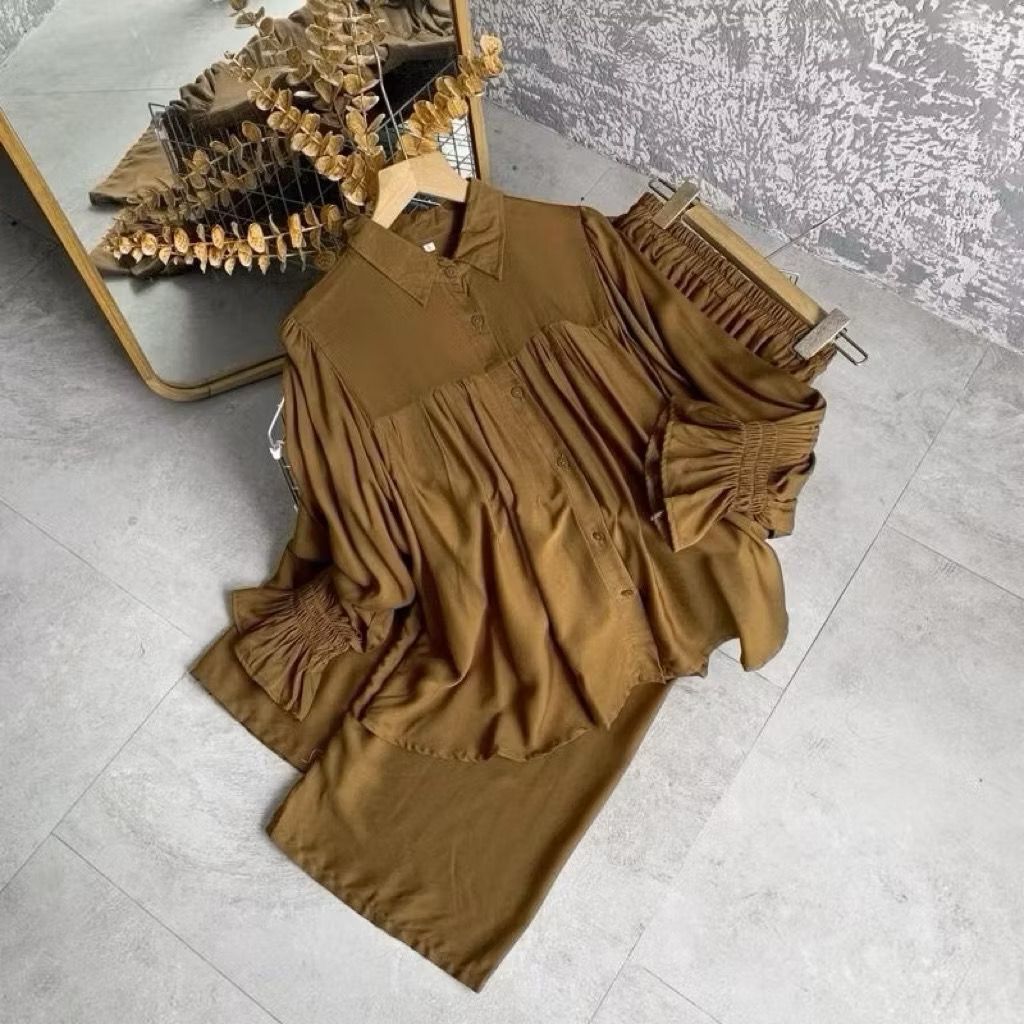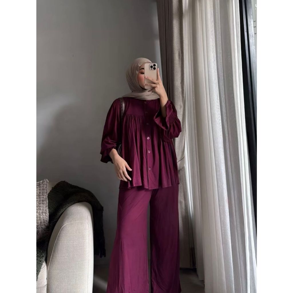 Jena Set Rayon Twill Polos Premium Jumbo Setelan Casual Wanita / Onset Terbaru Kekinian Casual
