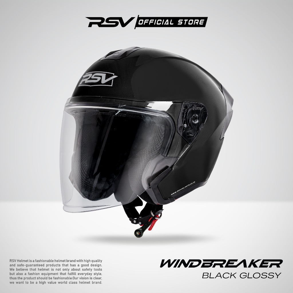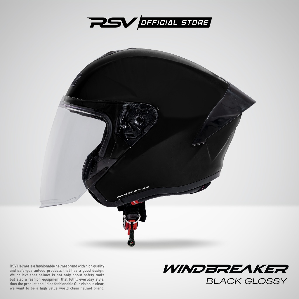 RSV Windbreaker Solid Black Glossy Single Visor - Helm Half Face SNI Unisex