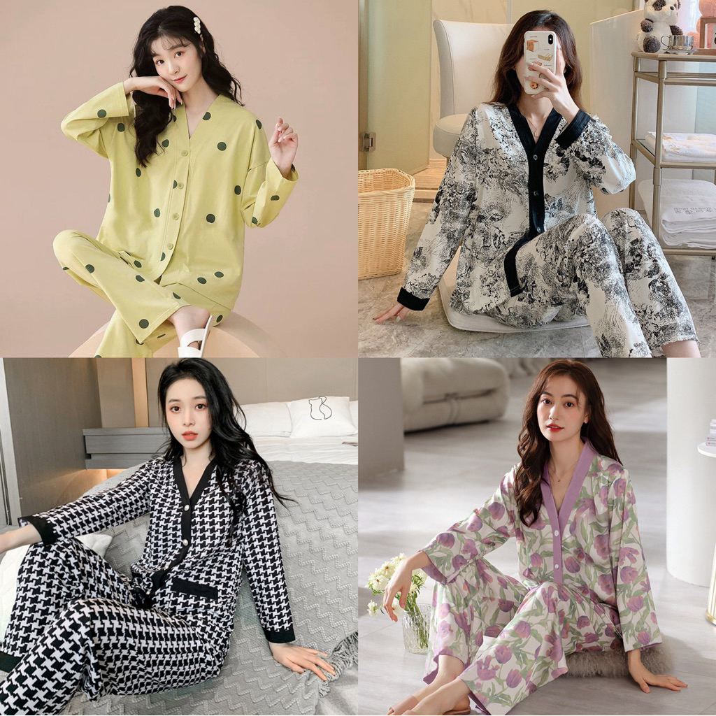 YH01 Piyama Wanita Korean Style , Piyama Wanita Lengan Panjang , Piyama Tidur Wanita , Piyama Katun Wanita , Baju Tidur