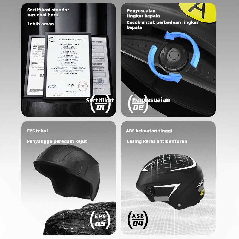 Helm Half Face dengan Perlindungan Berlapis & EPS Tebal, Dilengkapi Visor HD dan Ukuran Adjustable, Cocok untuk Pria dan Wanita